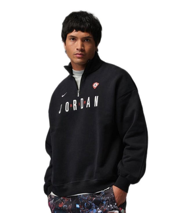 Black Cotton Loose Fit Striped Sports Hoodie