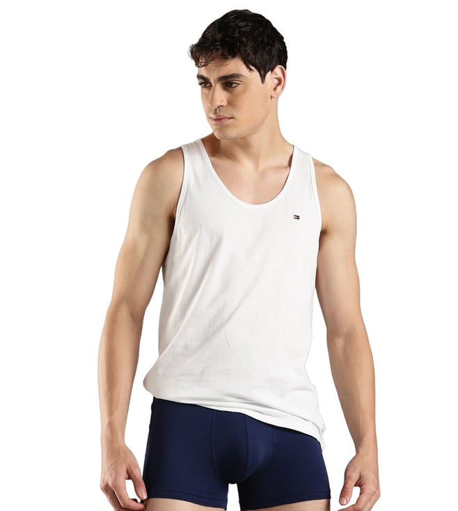White Cotton Regular Fit Solid Vest (Pack of 3)
