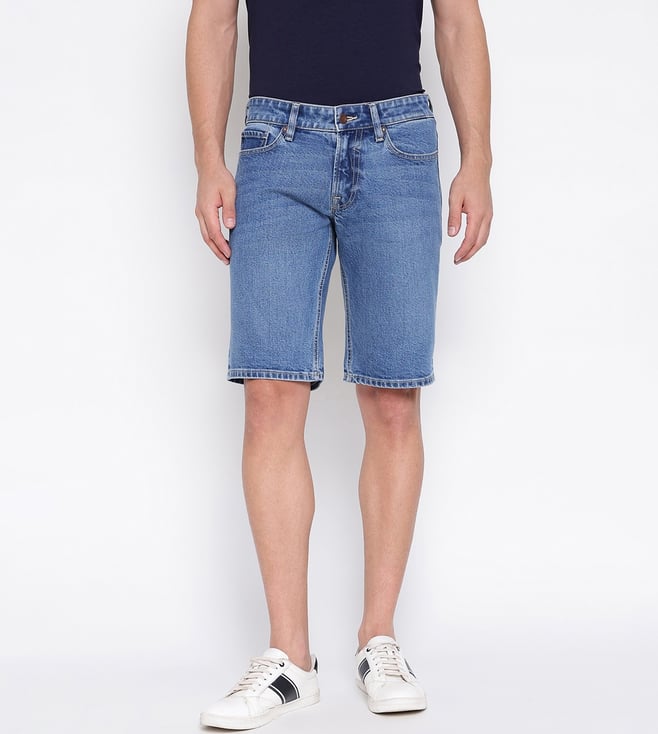 Sonny Blue Solid Mid Rise Regular Fit Denim Shorts