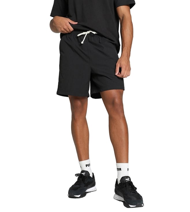 Black Logo Regular Fit Mid Rise Shorts