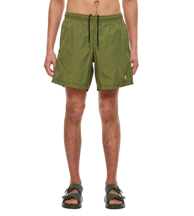 Black Green Printed Swimming Shorts