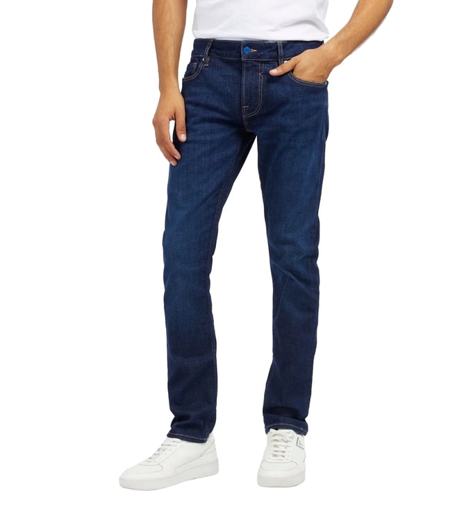 Navy Cotton Regular Fit Solid Polo T-Shirt