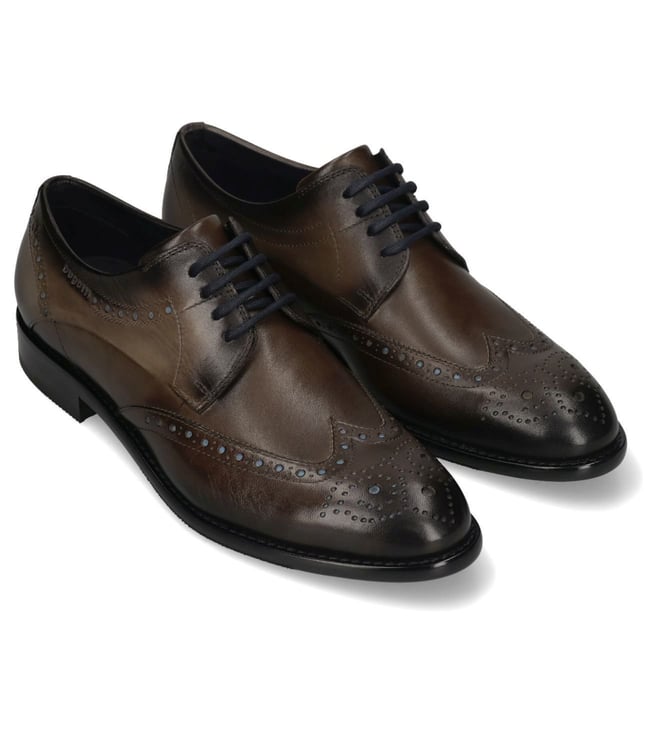 Vincenzo Grey Leather Square Toe Lace Up Decor Shoes