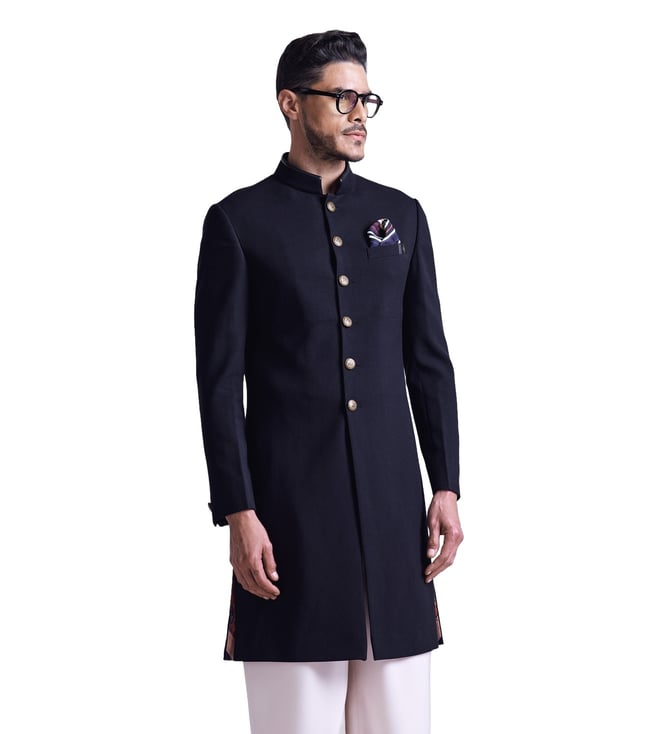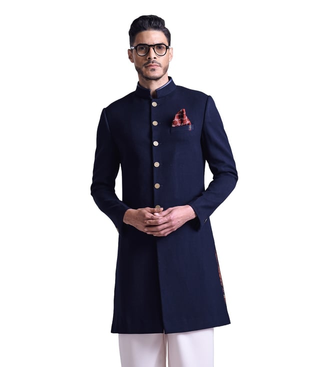 Hazy Blue Linen Silk Regular Fit Sherwani Set