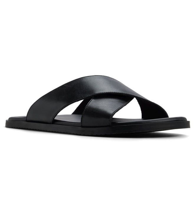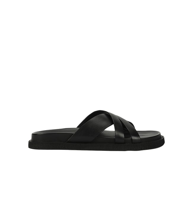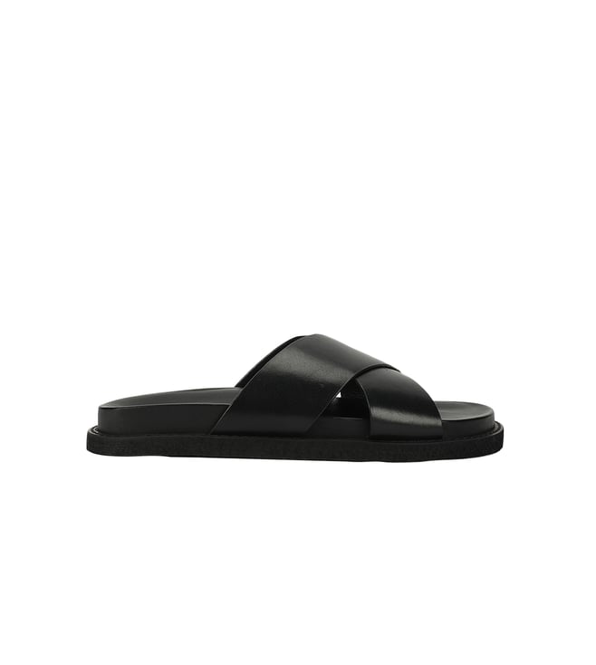 Men's Pelle Lustro Black Cross Strap Sandals