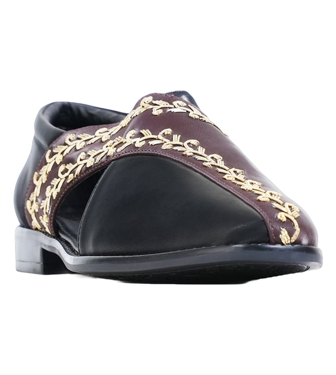 Men's Nouveau Brown Embroidered Nawabi T Strap Sandals