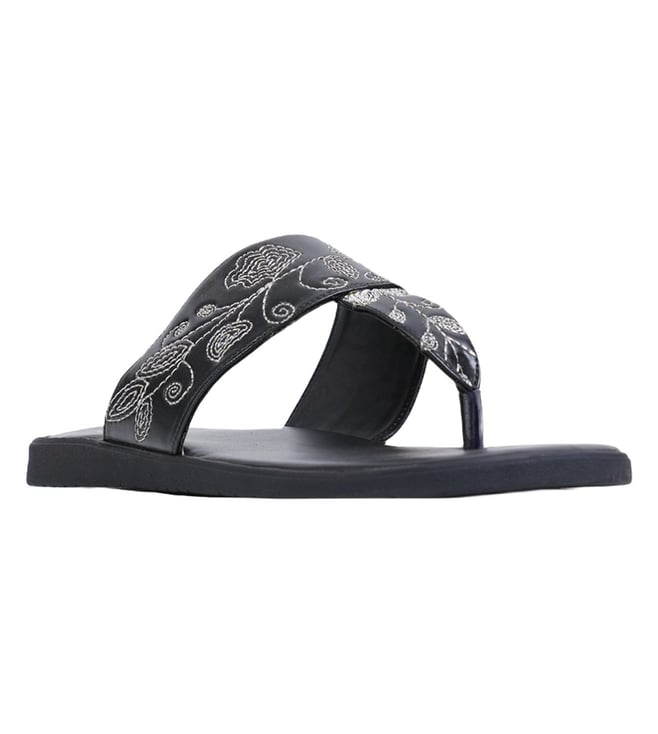 Men's Nouveau Black Embroidered Nawabi T Strap Sandals