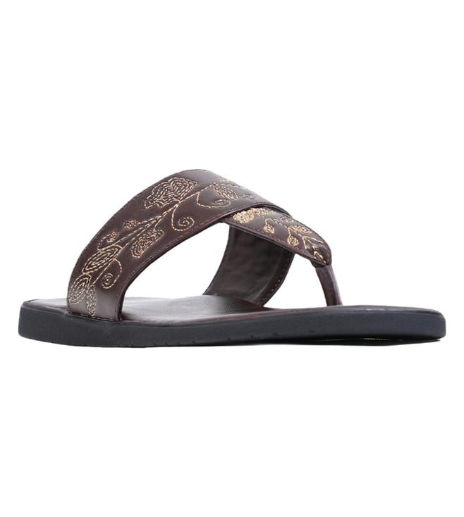 Men's Nouveau Brown Embroidered Nawabi T Strap Sandals