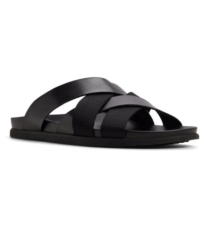 Men's Pelle Lustro Black Cross Strap Sandals