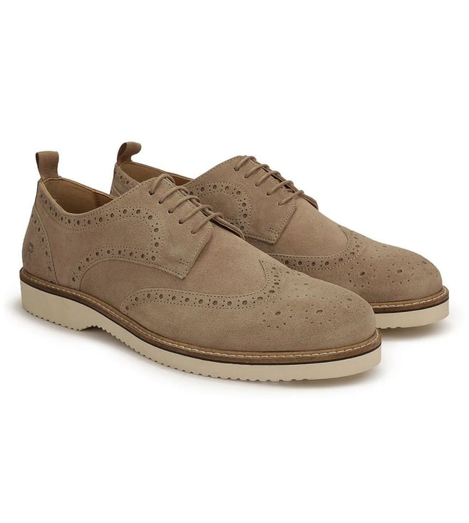 Men's Lite Court Beige Suede Leather Formal Brogue Shoes