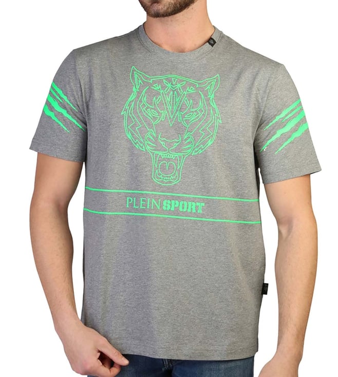 Grey Cotton Printed Regular Fit T-Shirt