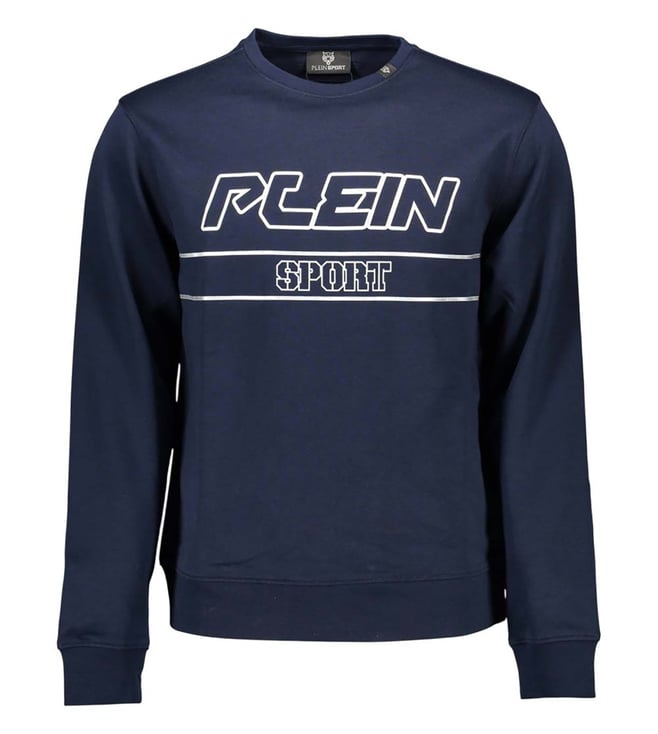 Navy Blue Crewneck Logo Print Regular Fit Sweatshirt