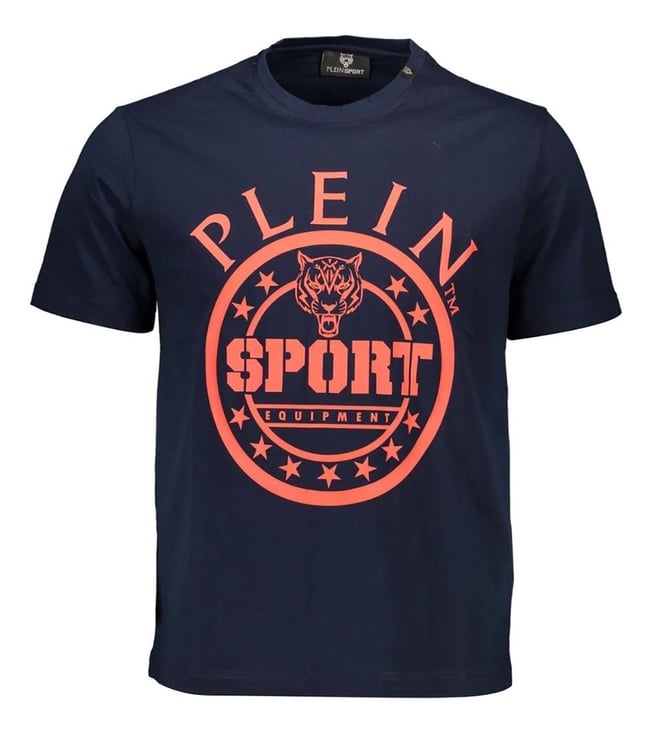 Navy Blue Cotton Printed Regular Fit T-Shirt
