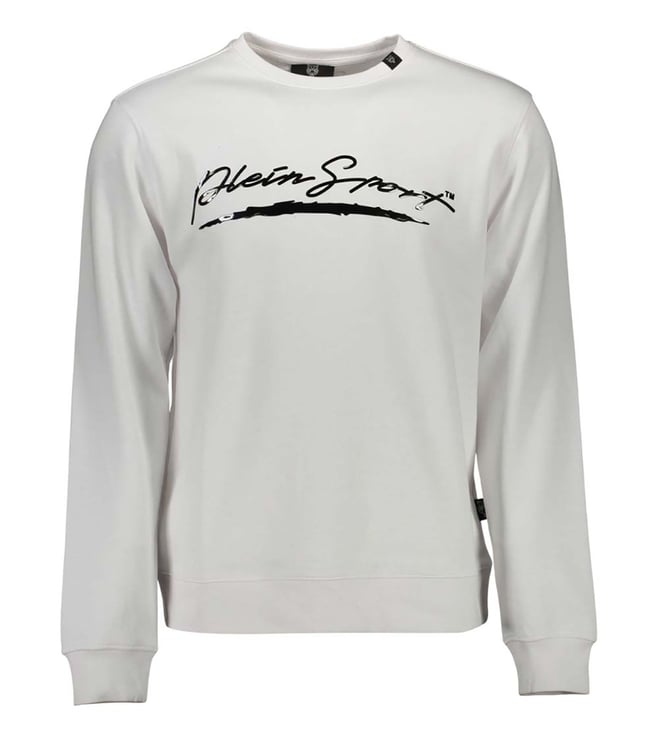 White Crewneck Logo Print Regular Fit Sweatshirt