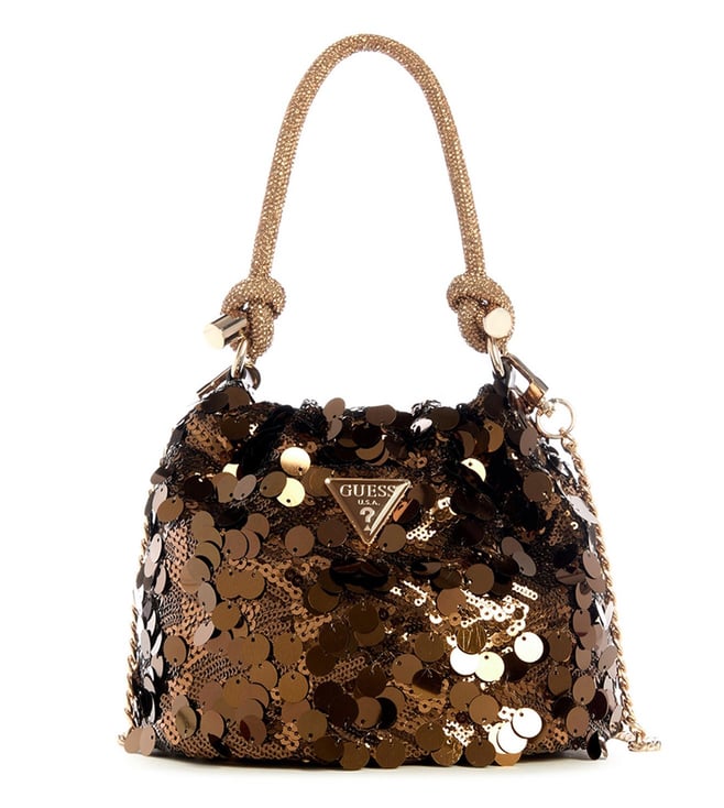 Bronze Holiday Shine Embellished Bucket Bag