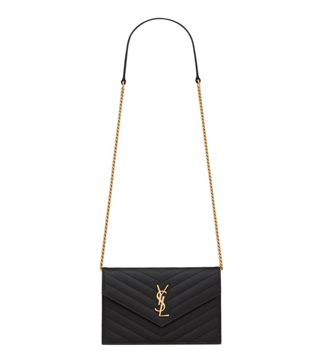 Black Monogram Leather Clutch on Chain