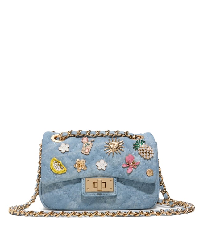 Natural W & Breezy Blue Textured Cross Body Bag