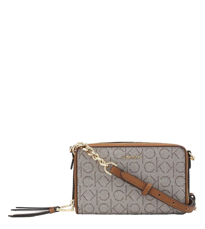 Brown Overflow LANASSI Printed Medium Cross Body Bag
