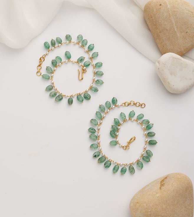 Gold-Plated Pink & White Pearl & Beaded Anklets