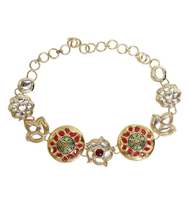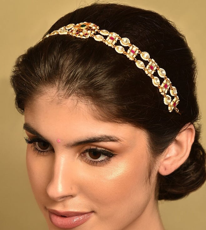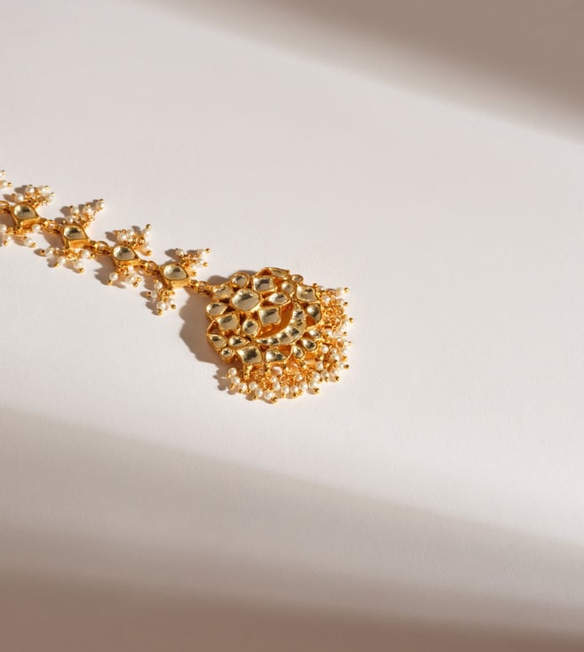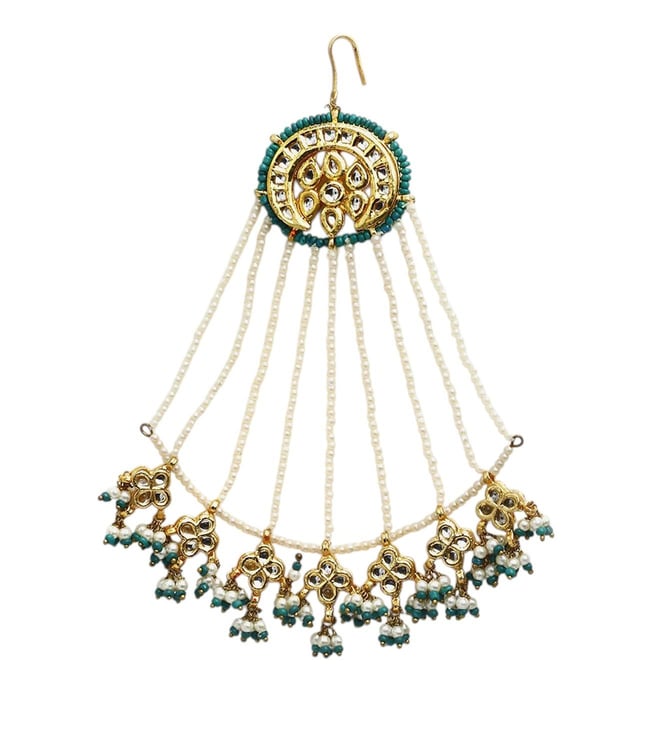 Gold-Plated White & Gold Kundan-Studded Beaded Jhoomar Passa