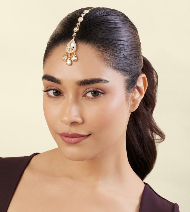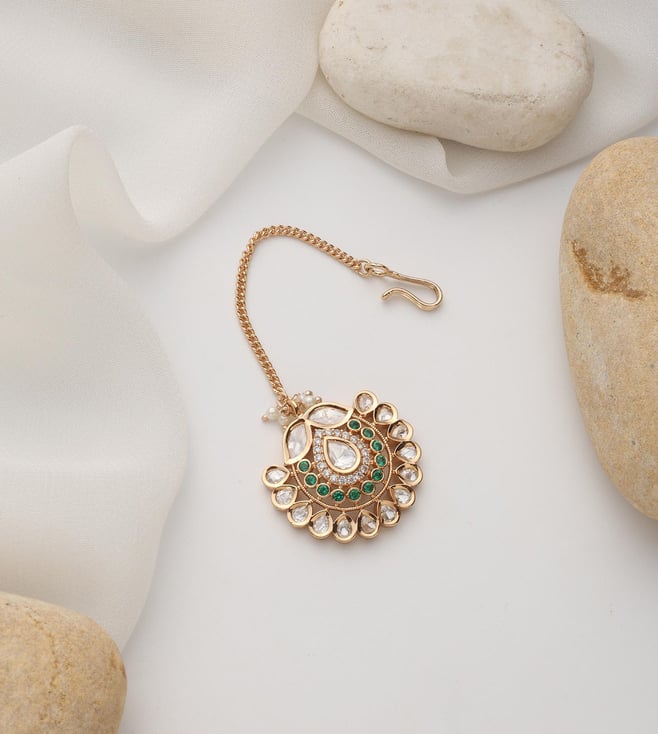 Silver 92.5 Sterling Silver With Gold Polish Nazafain Maangtikka