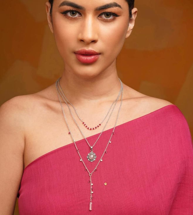 Silver 92.5 Sterling Silver With Gold Polish Jahanzeb Layered Necklace