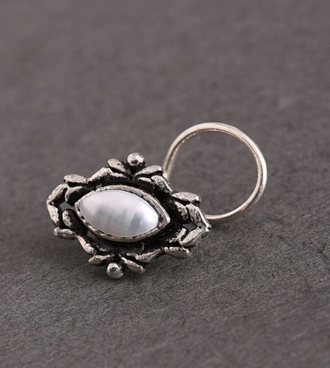 Gold-Plated White Kundan Studded & Pearl Beaded Nose Pin