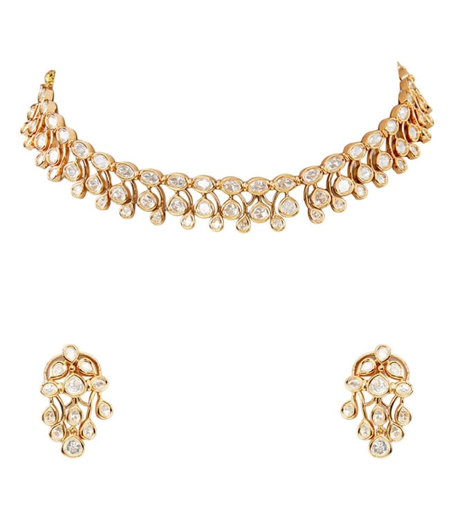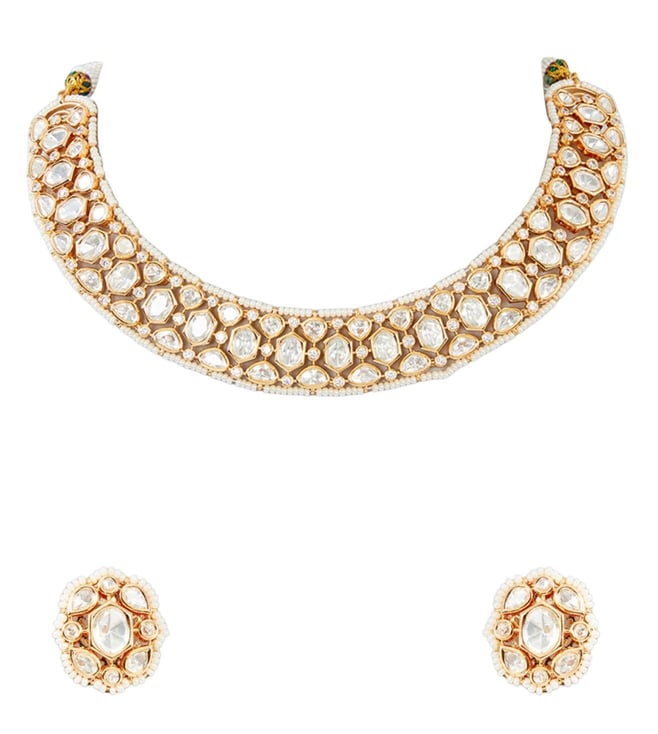 Blue & Cream Necklace With Earring Jewellery Set With Kundan & Pearls