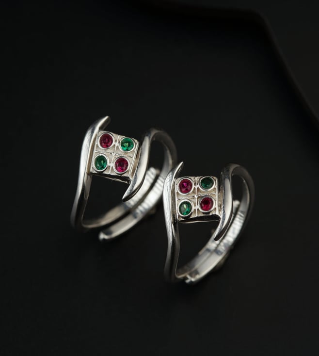 Minimal Silver 92.5 Aam Ras White Stone Toe Ring