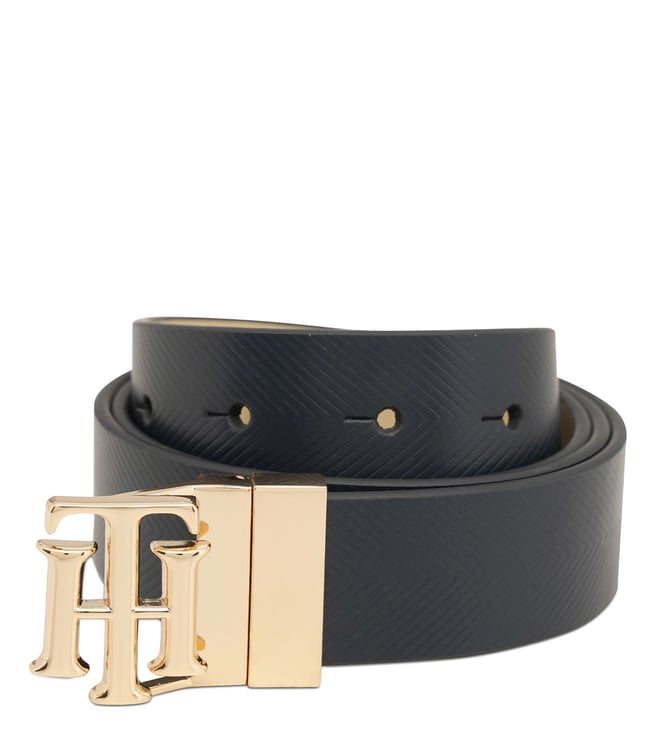 Navy & Ecru Aizen Textured Leather Reversible Belt