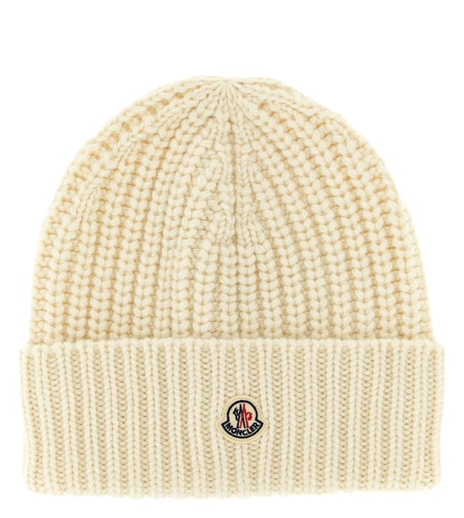 White Textured Logo Beanie