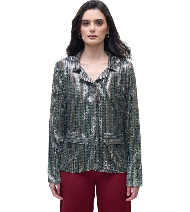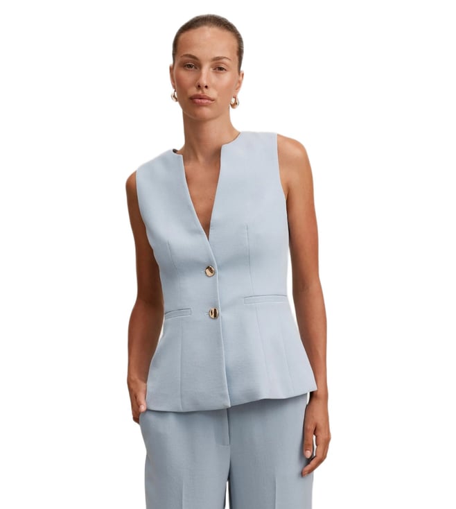 Women's Blue Viscose Solid Regular Fit Notched Lapel Full Sleeve Blazer