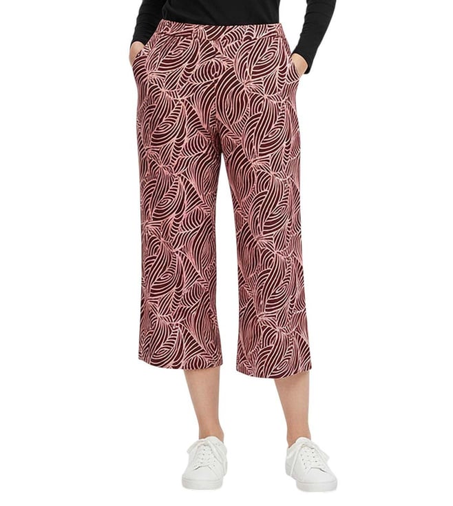 Brown Coral Printed Relaxed Fit Capris