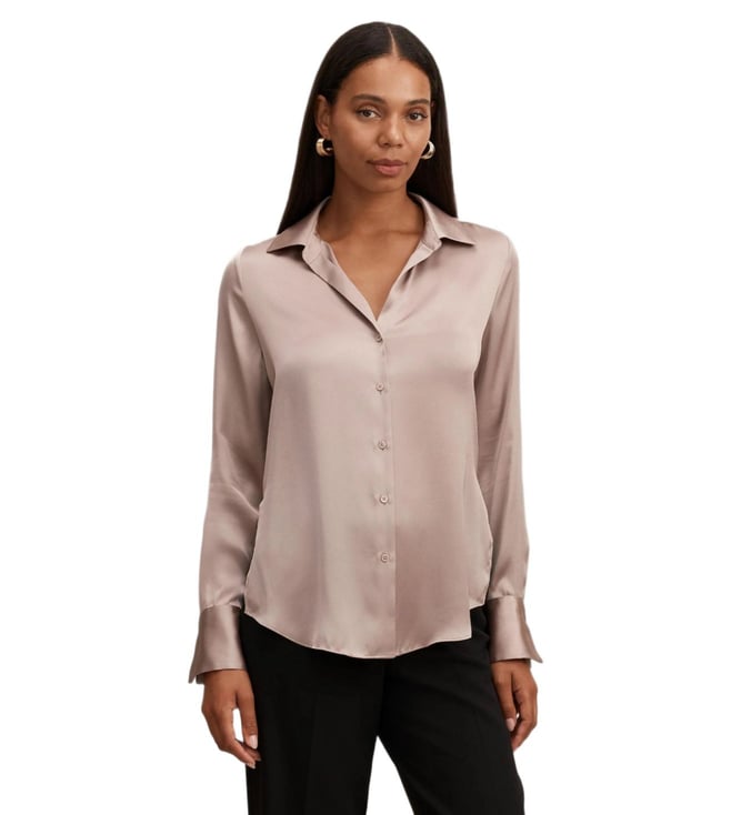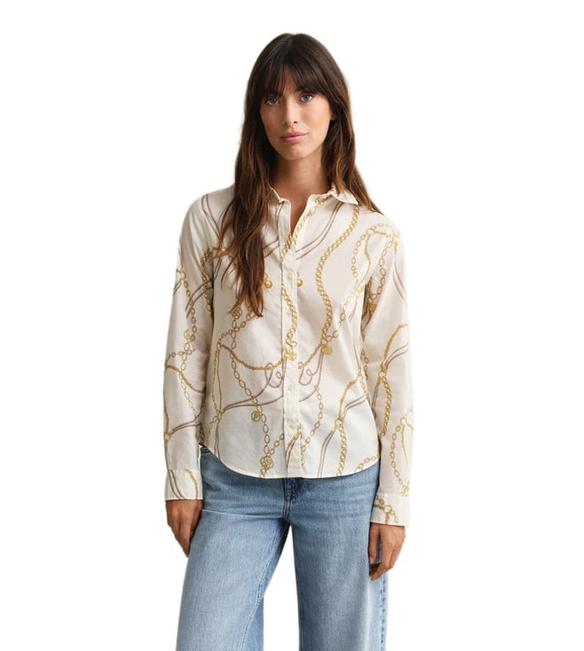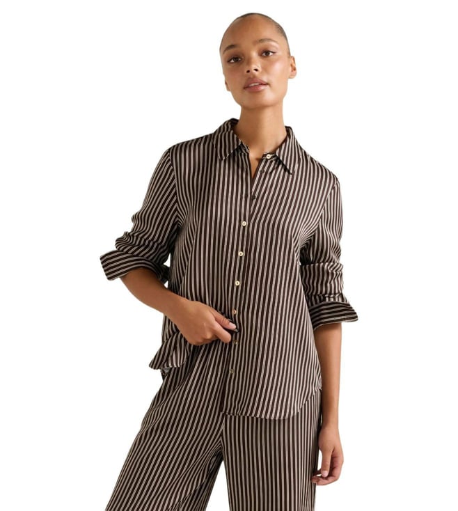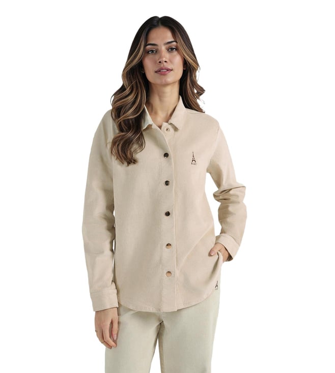 Beige Cotton Regular Fit Striped Shirt