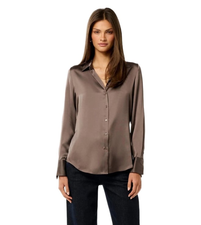 Women Black Embellieshed Spread Collar Shirt