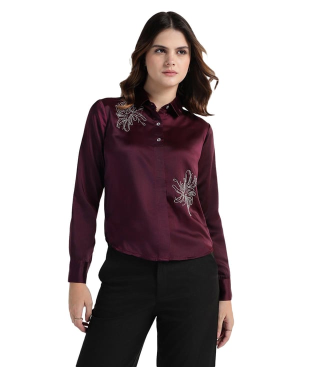 Plum Wine Regular Fit All Over Print Long Sleeves Shirt