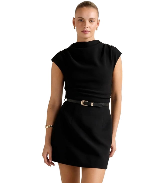 Mono Compact Stretch Taffeta Slim Fit Ruffle Midi Dress