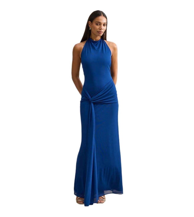 Women White & Blue Printed Mock Neck Dress