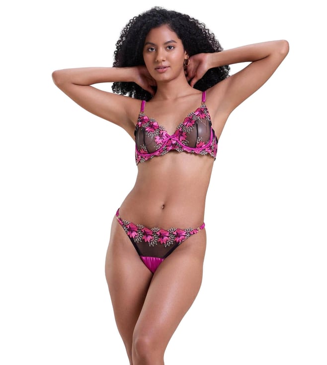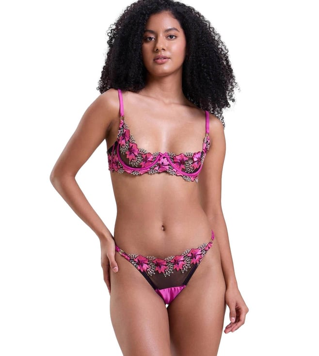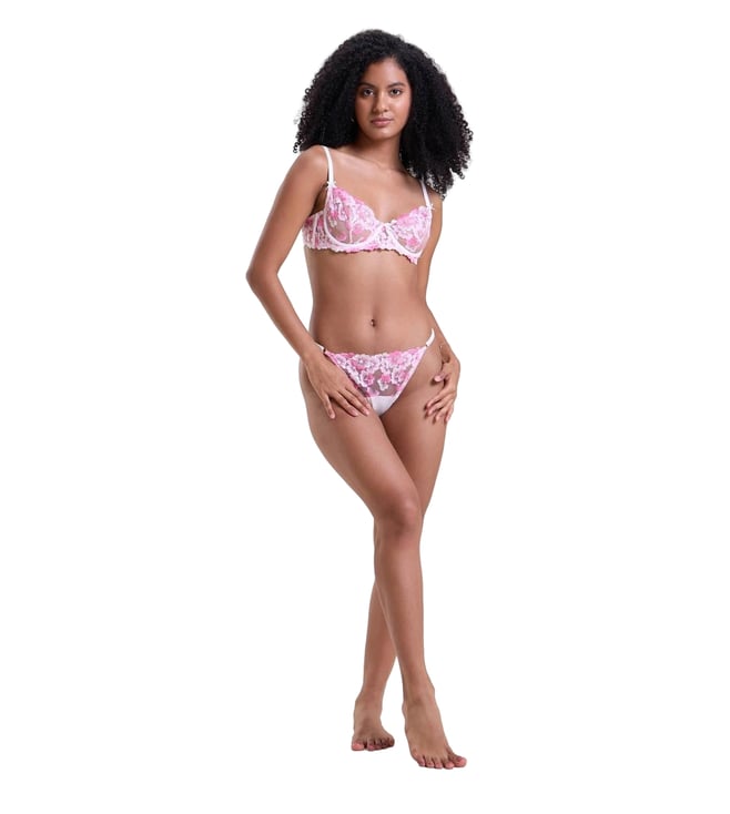Pink Fleur Half Coverage Embroidery Non-padded Bra & Thong Set
