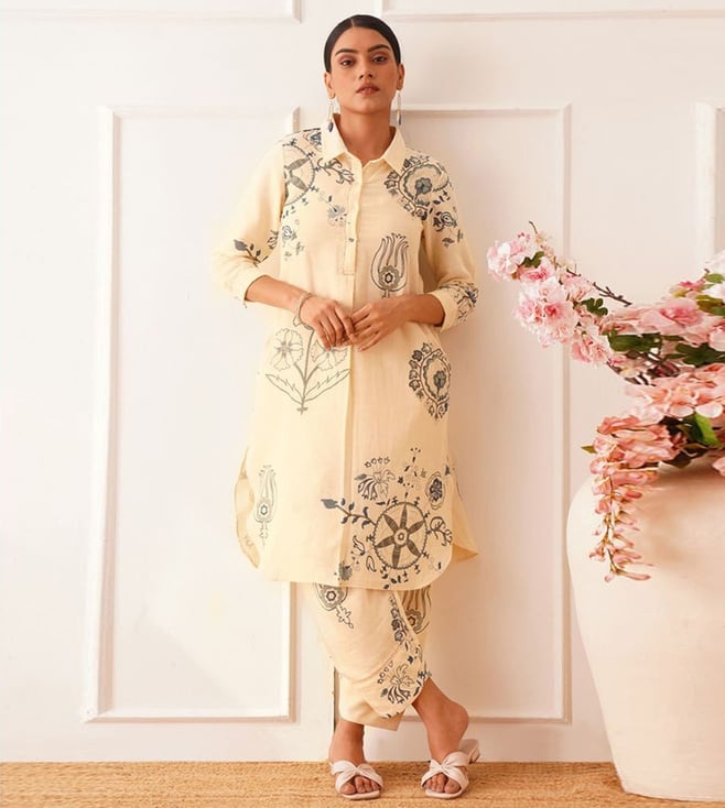 Mahua Amber Yellow Printed Regular Fit Co-ord Set
