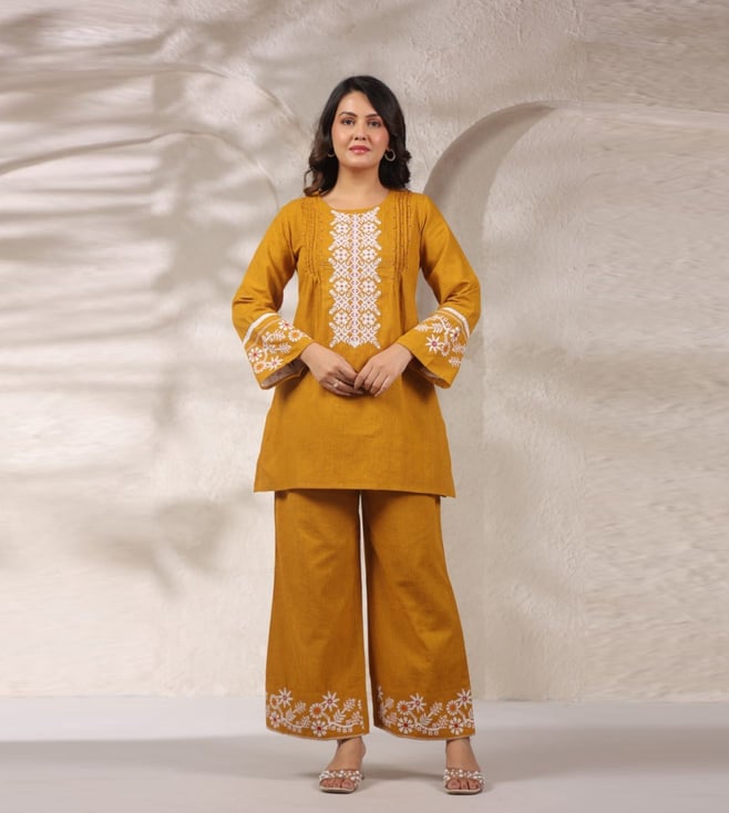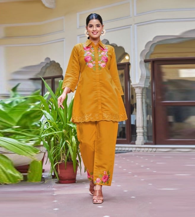 Darika Sunrise Yellow Embroidered Regular Fit Co-ord Set