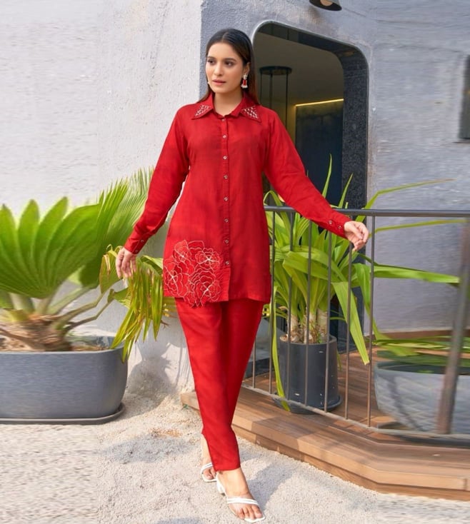 Divya Scarlet Red Embroidered Regular Fit Co-ord Set