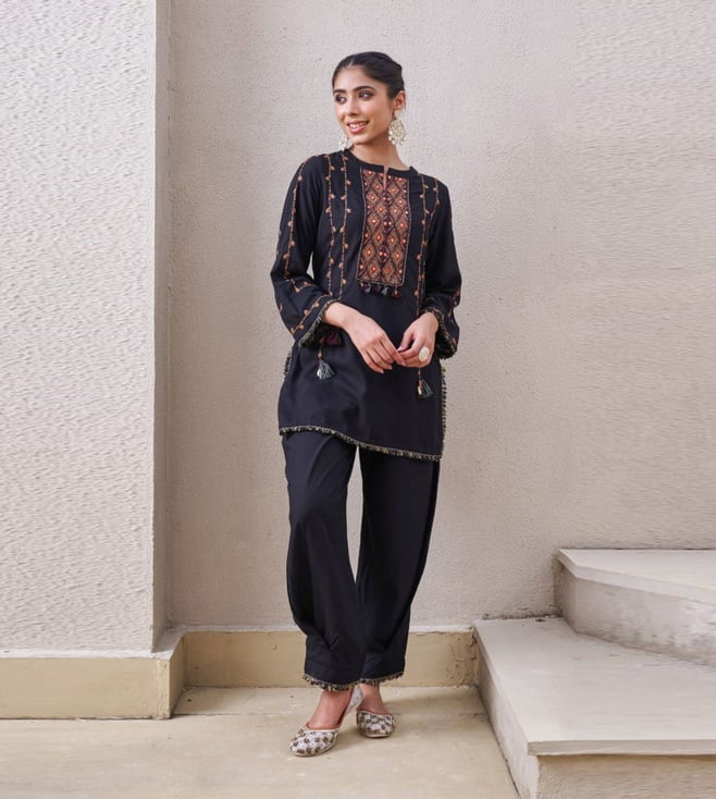 Black Kinnauri Cape with Inner and Pant Co-Ord Set