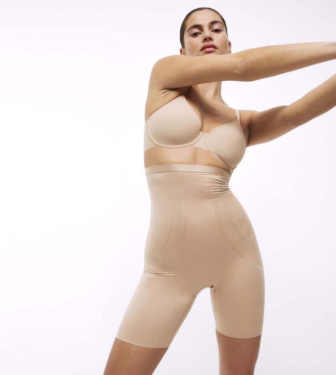 Beige Girdle Collection High-Waist Medium Compression Seamless Tummy & Thigh Shapewear