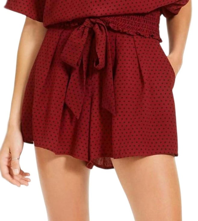 Dark Brandy Tie-Waist Pleated Regular Fit Shorts