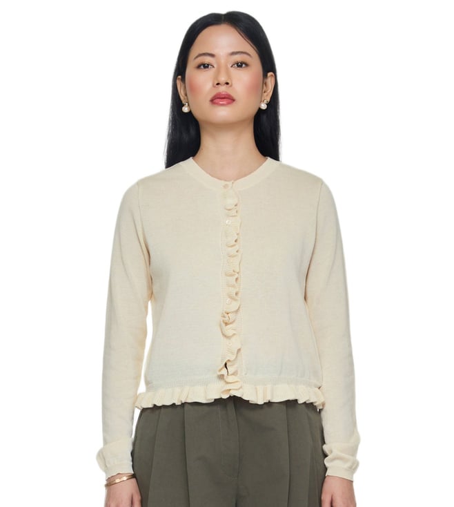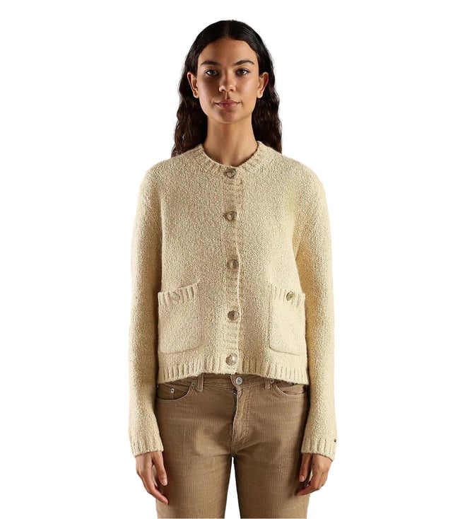 Country Ivory Regular Fit Cotton Round Neck Cardigan