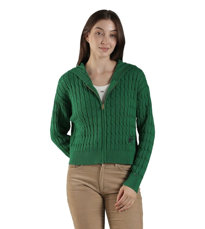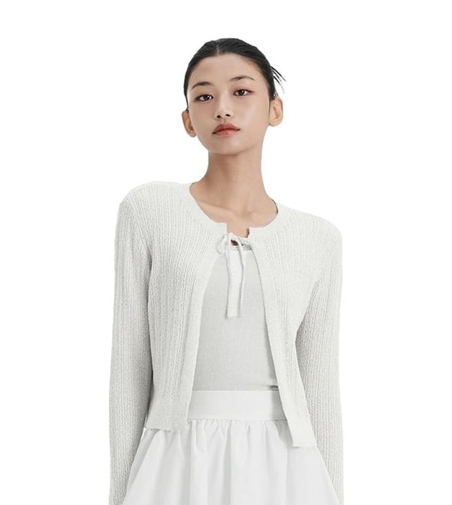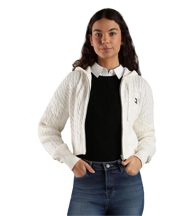 Ancient White Regular Fit Cotton Hooded Neck Cardigan