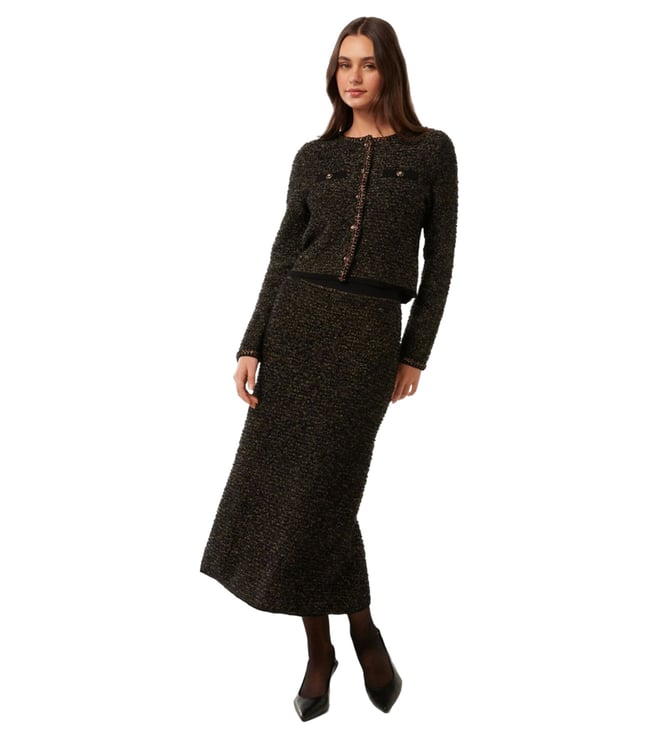 Brown Long Sleeves Matinna Printed Front Zip-Up Bomber Cardigan