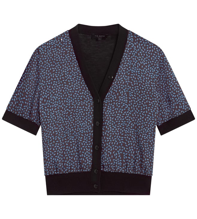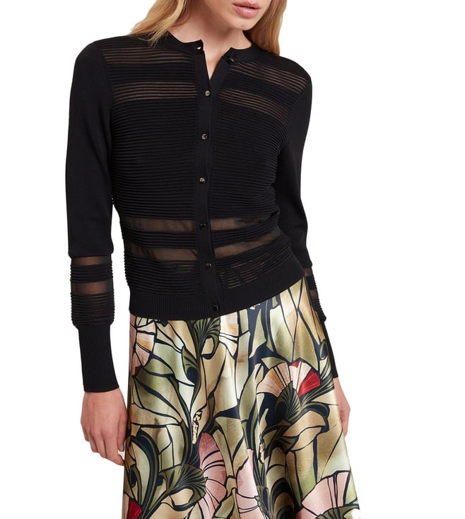 Black Self Design V-Neck Amira Shiny Yarn Cardigans