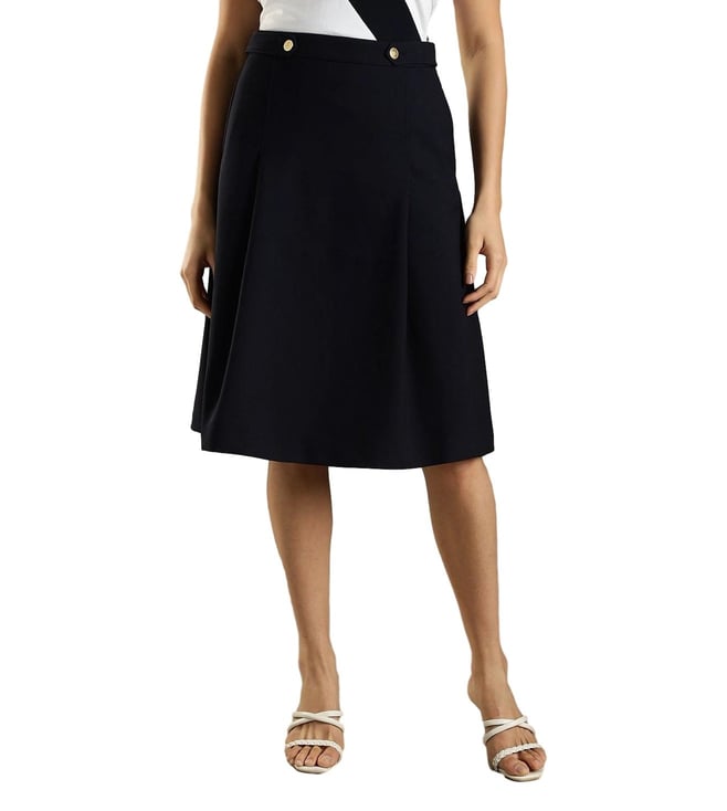 Black HER High-Waist Woven High Rise Relaxed Fit Midi Skirt
